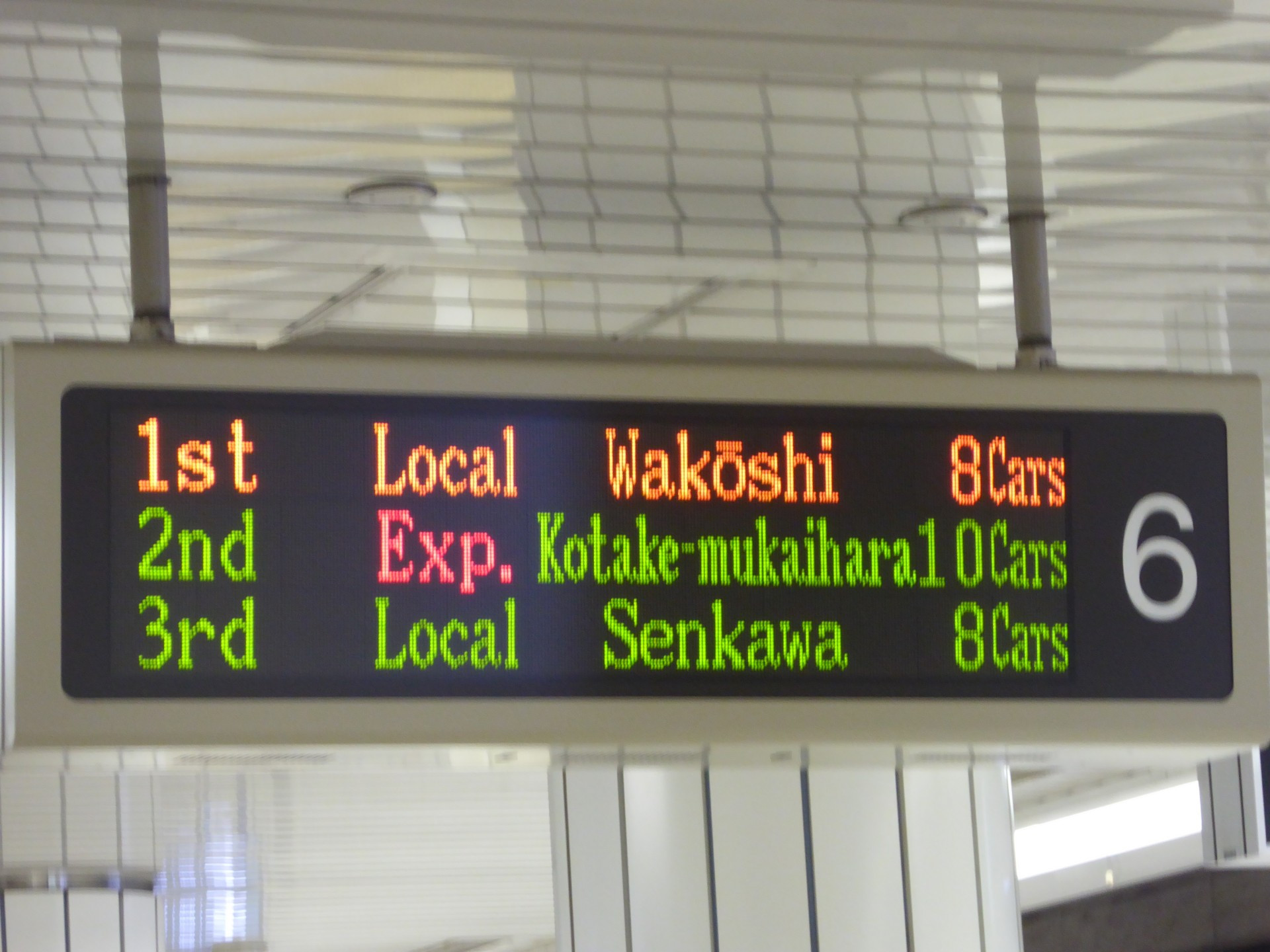 There will also be an electric signboard in most stations, which tell you which train is coming next and how long it should take for it to arrive. It tends to rotate between an English version and a Japanese version.